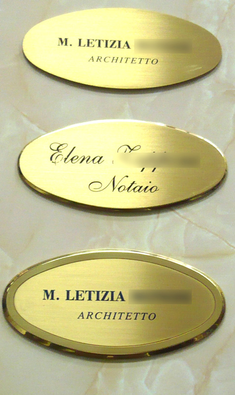 Targa in ottone ovale cm. 20x30 con base in legno e borche